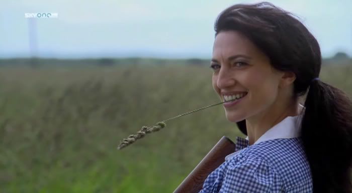 And Vala (who is clearly getting most of the wardrobe budget, but that's okay, she earns it and looked spectacular for the ep). Fabulous dresses, and I sort of loved the Dorothy Gale/Daisy Duke thing (for one, CB has the utter confidence to pull it off, and for two, the scene with Vala just nailing those cans with the gun, hay between her teeth, giving Mitchell that speculative stare and saying, "Accounts... Receivable" just cracked me up).